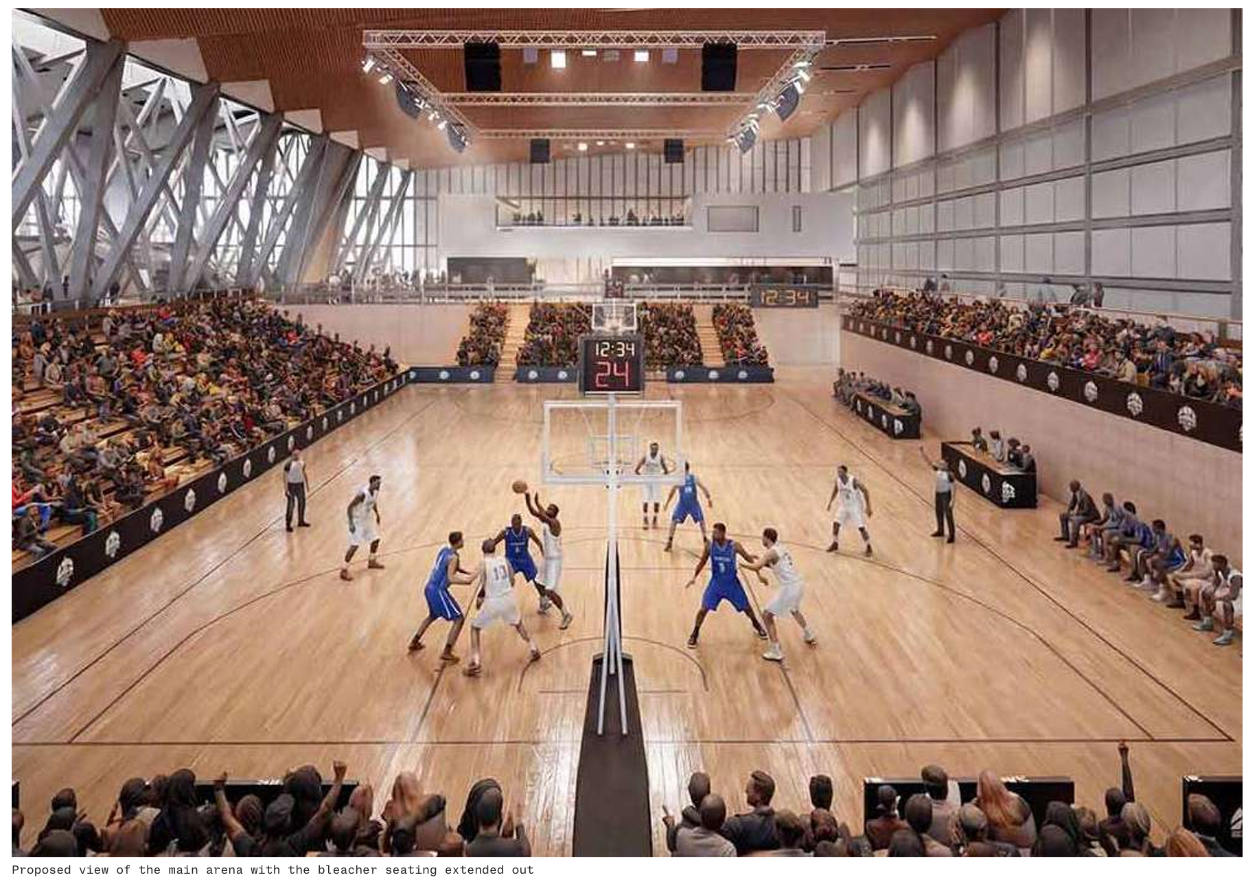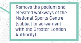 • Removal of the podium and high level walkway [that includes demolishing the indoor athletics track and other facilities]