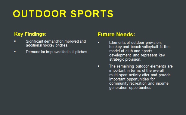 More news to follow about the upcoming engagement approach, due to start soon. It is vital that sports users, clubs, stakeholders, and event organisers using the NSC help in this assessment of current and future demands.
