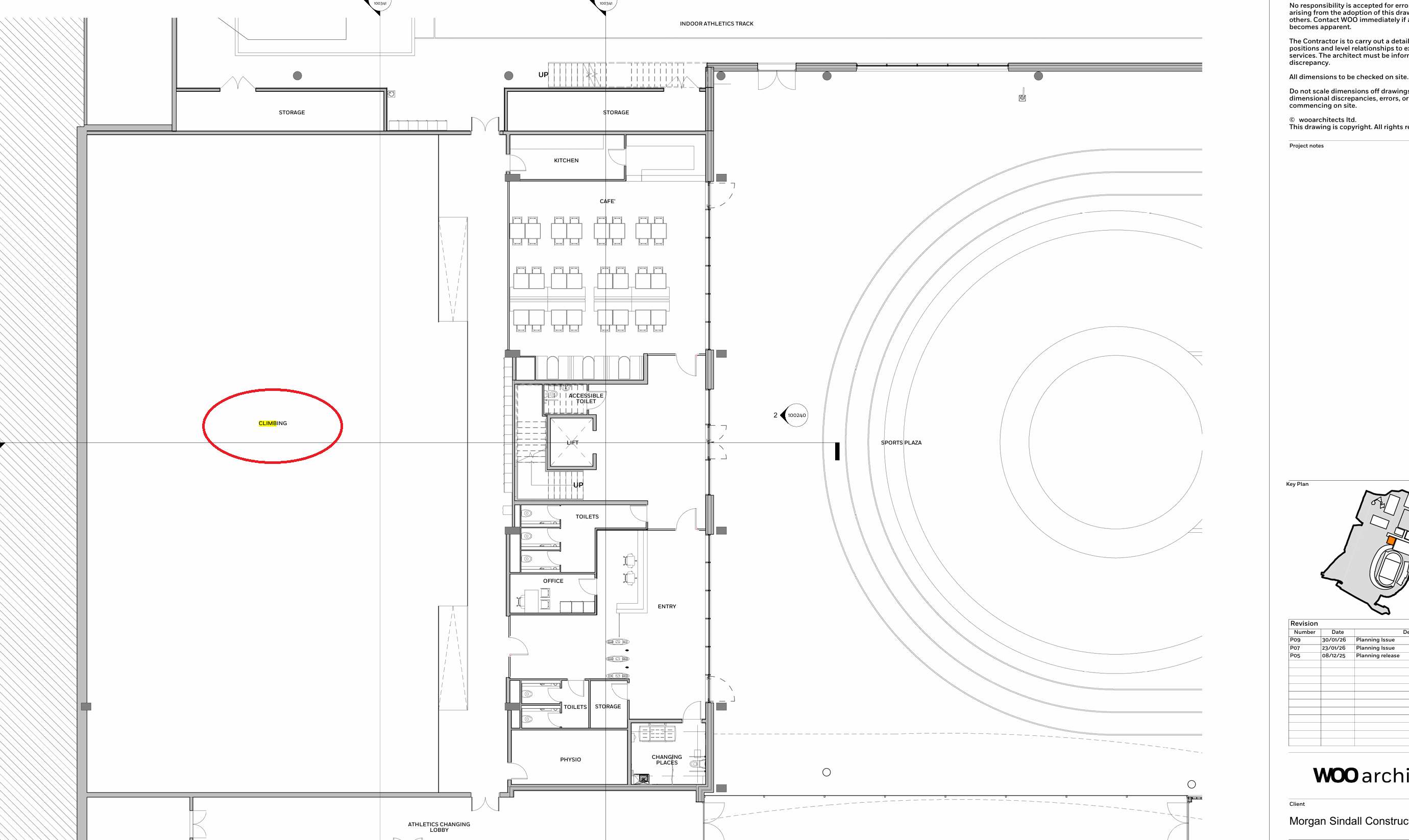 - Improvements to the indoor sports zones to elevate elite performance by providing year-round use for clubs, athletes and the community. This includes climbing as part of the proposed Key Public Facilities (and relocated into the old 5-a-side area). Climbing at the NSC has a proposed increase from 128 sqm (existing) to an allocated new climbing area of 621 sqm (proposed), with a new entrance.